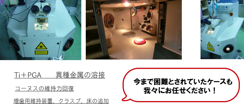 金属を局部的に溶かすので、レジンへのダメージも最小限に抑えることができ