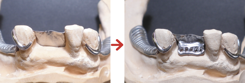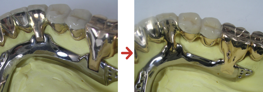 ロウ材ではなく、母合金と同じ金属で接合するので、口腔内での変色がありません